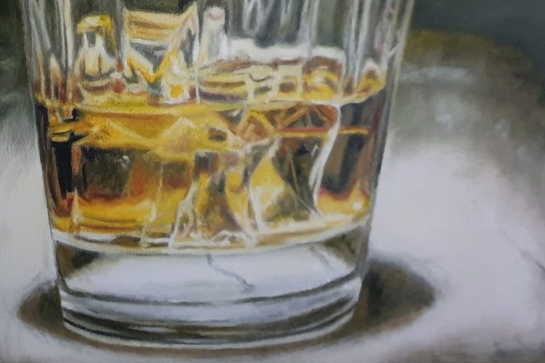 Beim Malen von Glas müssen Licht, Transparenz und Reflexionen betont werden. Das Farbspektrum ist wesentlich umfangreicher als die nur leicht ausgeprägte Farbe des Glas, da Spiegelungen der Umgebung auf die Oberfläche treffen. Helle Kontraste zu dunklen Bereichen können den Eindruck von Reflexionen erzeugen. Boden und Rand eines Glases sind oft dunkler und wirken weniger transparent. Sie definieren die Form des Glases vor einem dazu im Kontrast stehenden Hintergrund. Durch Lichtbrechung entstehen Verzerrungen.