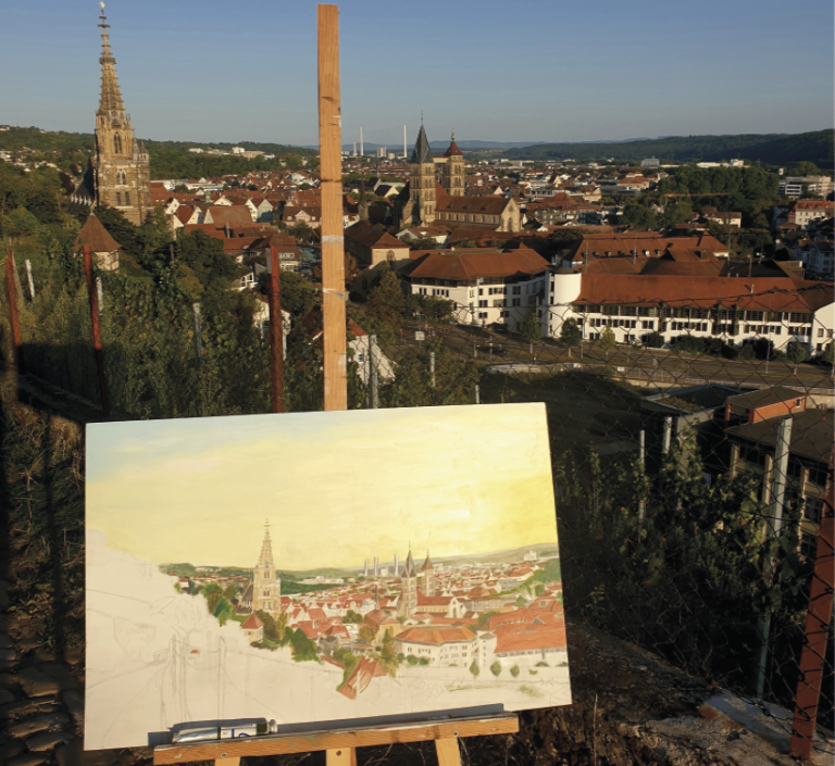 Esslingen, Neckarhaldenweg 2025, Ölfarbe auf Holz