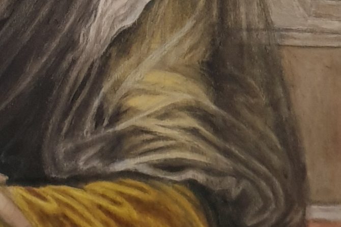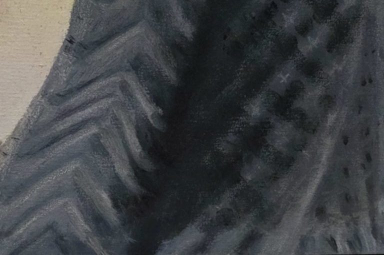 Das Malen von verschiedenen Stoffen ist sehr komplex zumal nicht nur Falten und Form, sondern auch Struktur und Muster, welche von der Art des Textils abhängen dargestellt werden müssen.