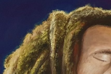 Für das Portrait von Michael Jackson diente ein Foto als Vorlage, der Hintergrund ist ein Fantasiegebilde.
